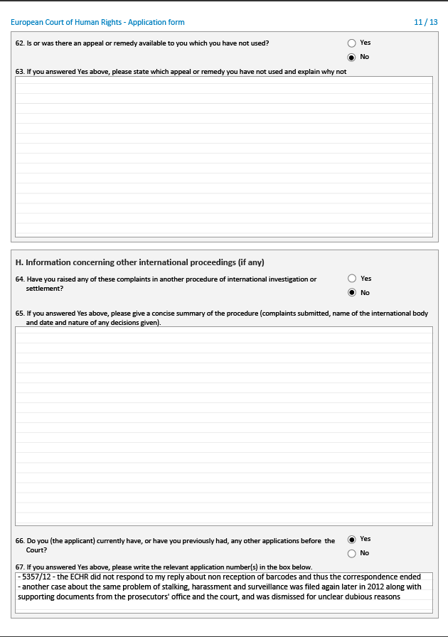 Polecam jeszcze przejrzenie dwóch przeglądów prawnych mojego autorstwa, były one załącznikami skargi (niestety także w języku angielskim):