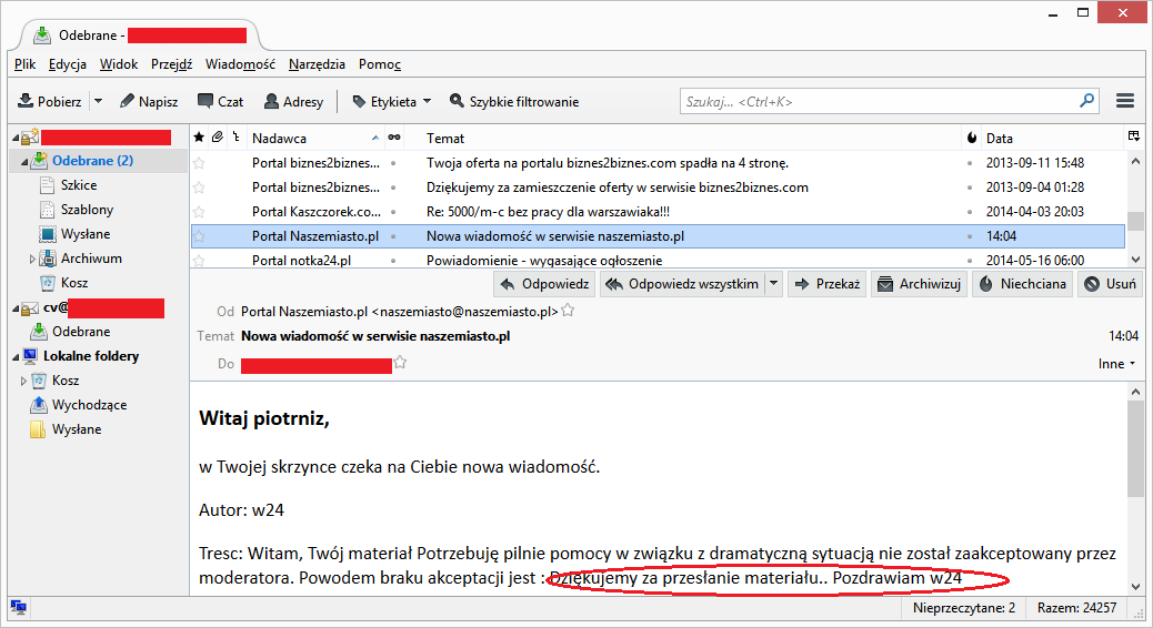 że nie podaję nazwy pracodawcy i adresu, i "dlatego" jakoby kasował moje — świeżo wyłapane o 3 nad ranem(!!!) — oferty pracy z podaną nazwą