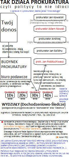 Bardzo mnie smuci, że w sondażu internetowym znanego radia aż 93% Polaków popiera rozdzielenie funkcji PG i MS, jedynie 7% uważa, że to niedobre. To mnie niemalże wpędza w rozpacz nad tym, jak niemądry mamy naród w tych tematach prawniczych, tj. dotyczących praworządności. Drwiną z takich poglądów była awantura o tzw. neo-KRS, w której eurokraci i eurosędziowie próbowali wspólnie z mediami przepchnąć wersję, że Polska właśnie straciła niezawisłość sądów "z powodu jakiejś ustawy", "jakichś detali w ustawie co do powoływania sędziów". To jest to samo niemądre myślenie – bardzo nietrafione! Doprawdy, jest to szyderstwo i drwina z powszechnego w narodzie niezrozumienia problemu. Problem jest taki, że już co najmniej za komuny, a chyba nawet za II RP, sędziowie nie płacili podatku dochodowego, tylko dostawali go razem z pensją. Nie wiem, od jak dawna tak jest też w prokuraturze i adwokaturze, ale obecnie bodajże też tak jest. Efekt tego jest taki, że premier będący liderem partyjnym jest dla sędziów i prokuratorów jak Bóg. Może nie każdy sędzia będzie chciał niesprawiedliwie i politycznie orzekać w konkretnej sprawie, może też są prokuratorzy, którzy podatek mają opłacony, a problem dotyczy tylko części tych grup zawodowych (moim zdaniem jednak w przypadku sędziów [edit: i adwokatów] dotyczy to wszystkich czy 99%) [edit: przepowiednie Królowej Saby sugerują, że potem to się rozszerzyło o pracę jako agent podsłuchowy, w wyniku czego ponoć niektórzy sędziowie bez wielkiej afery wypisali się w ogóle z tego układu – to mi brzmi nawet sensownie, spójnie z poszlakami (w tym w dziedzinie sprawozdawstwa budżetowego) i prawdopodobnie], tym niemniej problem jest i kierownicy w prokuraturach są zamieszani. I teraz choćby nawet weszło rozdzielenie funkcji MS i PG to tak będzie nadal. Już to przerabialiśmy chyba w r. 2010. Prokuraturę przejął Seremet, ale dalej były polityczne odmowy wszczęcia śledztwa. Doświadczałem ich wielokrotnie. Główną tego przyczyną było bodajże właśnie niepłacenie podatków w zamian za polityczną poprawność orzekania. Kierownicy dbają o to, by sprawy politycznie istotne trafiały tylko do prokuratorów, którzy je "odpowiednio" obsłużą zgodnie ze swym układem z rządem i fiskusem. Mam na to taśmę z wypowiedziami sekretarki prokuratury (jest w Internecie pod hasłem "bandyci Tuska"). I teraz efekt rozdzielenia funkcji PG i MS jest taki, że – krótko to podsumowując – możliwości dobrego i legalnego wykorzystywania władzy politycznej do wpłynięcia na prokuraturę już nie będzie, natomiast możliwość nielegalnego i szkodliwego wpływania na prokuraturę i sądy dalej w najlepsze będzie istnieć i nawet włos jej z głowy nie spadnie. Proszę tylko pomyśleć. Sama strata, a korzyści 0. To jest tak skandaliczne pogorszenie sytuacji, że aż pewnie widząc to zaczęliby się tłumaczyć: "ale przecież raz do roku jest jakiś raport PG [tak było w latach 2010-2015] i premier może go nie zatwierdzić, i wówczas są wybory nowego PG". Owszem, jest coś takiego, ale im większa odległość dzieli PG od rządu, tym gorzej. Oni mogą nawet nie chcieć go odwołać. Może np. w ostateczności otworzyłby śledztwo, raport roczny zatwierdzony, po czym w końcu je umorzą. A premier nie lubi mieszać się do śledztw, powie, że on nie jest od tych rzeczy. Powstaje sytuacja, w której za zło nie ma odpowiedzialnych w polityce, zmian na lepsze też nie ma kto zrobić. Proszę sobie wyobrazić. Z trudem człowiek przebija się przez milczenie, zakłada prasę, media elektroniczne, z trudem uzyskuje jakieś wpływy w społeczeństwie, co nieco słychać o skandalu krytym przez prokuratury i sądy: i co teraz? Odpowiedź: NIC! Wreszcie, dotarłszy po np. 20 latach walk z problemem do swojej "Itaki", mając media, dalej nie ma wpływu na nic, a politycy umywają ręce. "Śledztwa, troska o to, żeby były śledztwa, to nie zadanie rządu". "Jest niezależny Prokurator Generalny, niezawisły sąd rejonowy, do którego można się odwołać, i tyle". Mając PG jako ministra krytyka spadałaby bezpośrednio na samych polityków i nie mogliby oni umywać rąk, natomiast po tej szkodliwej zmianie, którą niestety aż 93% obecnie narodu popiera (chociaż może to dotyczy tylko internautów, w narodzie może ogółem odsetek jest mniejszy), będzie tragicznie pod względem odpowiedzialności rządu. A przecież to, żeby śledztwa były w ogóle wszczynane, to jest sprawa bardzo ważna. Brak śledztwa (zwłaszcza gdy dotyczy naruszeń praw człowieka) to jedno z najcięższych możliwych naruszeń praworządności w dziedzinie prawa publicznego. Nie może być tak, że czyny zabronione nie są w ogóle ścigane, bo to przekreśla w ogóle zakazy, prawo traci w ogóle przez to na znaczeniu. Podsumowując, będzie przez to rozdzielenie tak, że dobrego wpływu na prokuraturę nie będzie można wywierać, a zły nadal będzie możliwy i w najlepsze będzie dalej istniał.